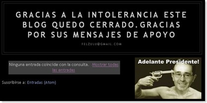 Según leo en ¿Comunicación? el periodista Felipe Zuleta cedió a la presión oficial y termino cerrando su blog, una ventana critica a las políticas del gobierno.